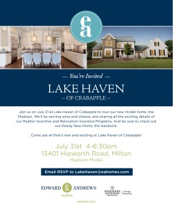 Join us on July 31 at Lake Haven of Crabapple to tour our new model home, the Madison.
