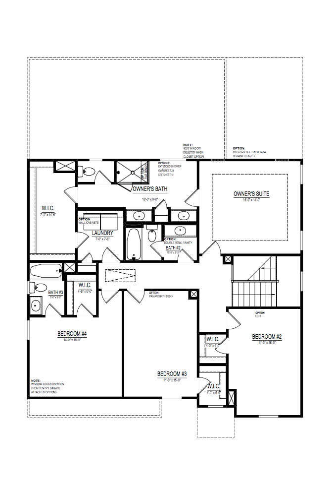 The private owner’s suite includes an oversized shower, a large walk-in closet, and access to the laundry room through the closet.